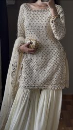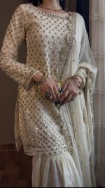 Be the first to review “SOLID IVORY MIRROR EMBELLISHED KURTA GHARARA SET”