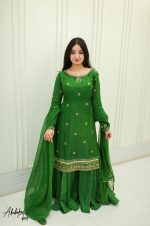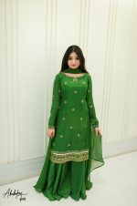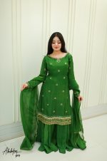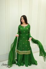 SOLID GREEN KURTA WITH SHARARA AND DUPATTA Original price was: ₨65,000.00.Current price is: ₨25,000.00.