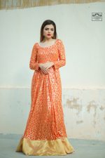 Be the first to review “SOLID LONG FLARED BANARSI ORANGE ANARKALI SET WITH PAJAMA” Cancel reply