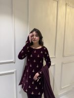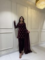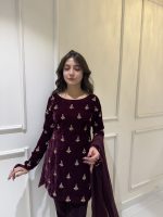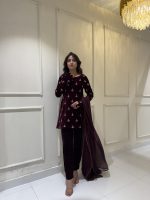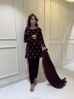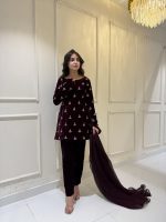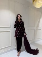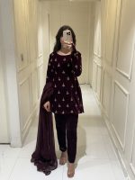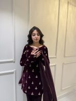 Be the first to review “SOLID MAGENTA VELVET KURTA PAJAMA SET WITH DUPATTA”