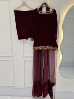 SOLID MAROON HAND EMBELLISHED KURTA WITH FARSHI SHALWAR