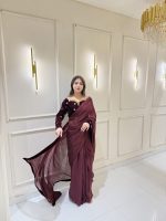 SOLID ROYAL BLUE VELVET BLOUSE AND SAREE Original price was: ₨20,000.00.Current price is: ₨15,000.00.