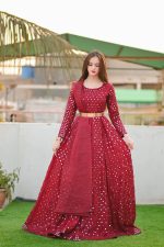 Be the first to review “SOLID MAROON HEAVY MIRROR EMBELLISHED LONG FLARED ANARKALI SET” Cancel reply