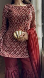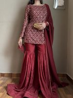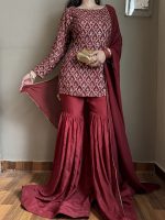 Be the first to review “SOLID MAROON KURTA GHARARA SET”