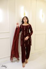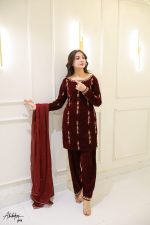 Be the first to review “SOLID MAROON VELVET KURTA SHALWAR WITH DUPATTA”