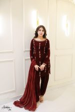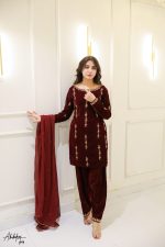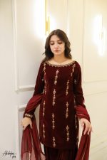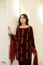 SOLID MAROON VELVET KURTA SHALWAR WITH DUPATTA
