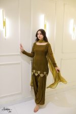Be the first to review “SOLID MEHENDI GREEN SHORT LENGTH KURTA WITH SHALWAR”