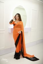 Be the first to review “SOLID ORANGE AND BLACK SAREE”