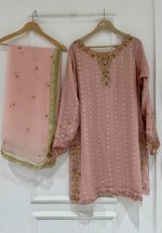 Be the first to review “SOLID PEACH EMBELLISHED KURTA WITH LEHENGA AND DUPATTA”