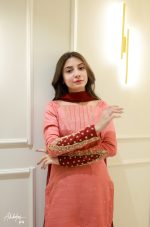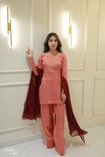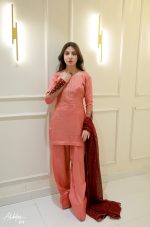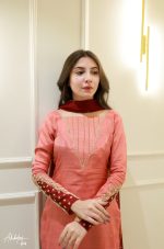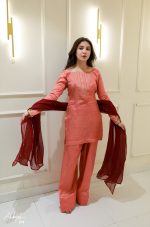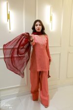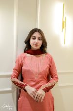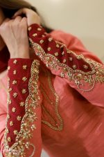 Be the first to review “SOLID PEACH HAND EMBELLISHED KURTA WITH FARSHI SHALWAR AND DUPATTA”
