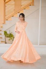 Be the first to review “SOLID PEACH MIRROR EMBELLISHED LONG FLARED ANARKALI SET WITH DUPATTA” Cancel reply