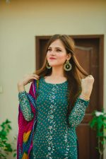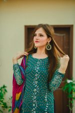 Be the first to review “SOLID PEACOCK CHUNDRI KURTA WITH PAJAMA AND DUPATTA”