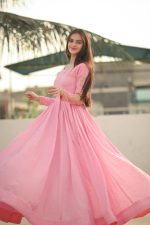 Be the first to review “SOLID PINK HAND EMBELLISHED LONG FLARED ANARKALI SET WITH PAJAMA” Cancel reply