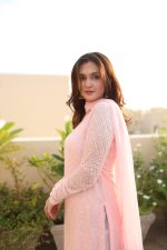 Measure the space between your shoulder points. Position the end of the tape flat against your back at the first shoulder point. You should be measuring across the broadest part of your shoulders which usually lands out roughly to 1 to 2 inches (2.5cm to 5cm) below the neckline.