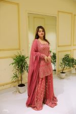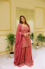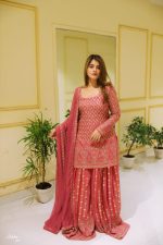 SOLID PINK LONG FLAIR CHIKANKARI GHARARA AND KURTA