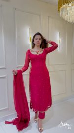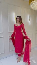 Be the first to review “SOLID PINK LONG HAND EMBELLISHED KURTAWITH TROUSER AND DUPATTA”