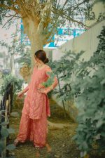 RED MIRROR WORK EMBELLISHED LONG FLARED CHIFFON ANARKALI SET Original price was: ₨25,000.00.Current price is: ₨18,000.00.