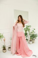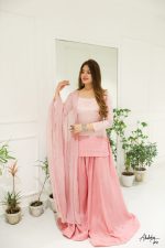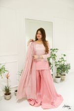 Be the first to review “SOLID PINK WEAVING KURTA GHARARA AND DUPATTA”