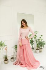 SOLID PINK WEAVING KURTA GHARARA AND DUPATTA