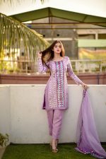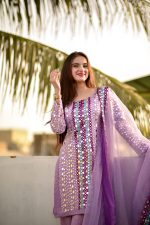 Be the first to review “SOLID PURPLE MIRROR EMBELLISHED SUIT SET WITH DUPATTA”