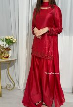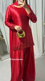 Be the first to review “SOLID RED HAND EMBELLISHED KURTA WITH FARSHI SHALWAR AND DUPATTA”