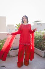 Be the first to review “SOLID RED KURTA WITH FARSHI SHALWAR AND DUPATTA”
