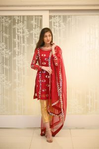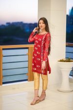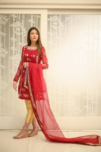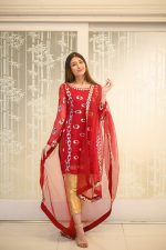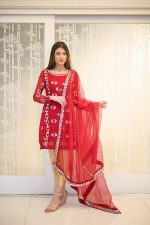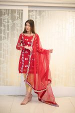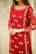 SOLID RED HAND EMBELLISHED KURTA WITH GHARARA Original price was: ₨35,000.00.Current price is: ₨20,000.00.