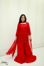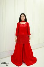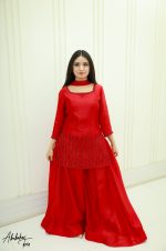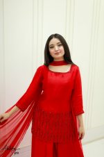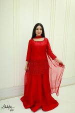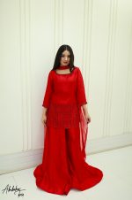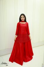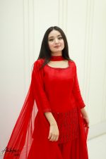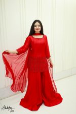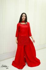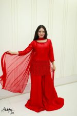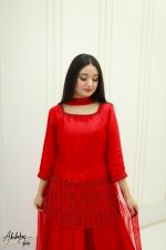 Be the first to review “SOLID RED PURE SHEESHA SILK HAND EMBELLISHED KURTA SHARARA SET”
