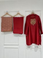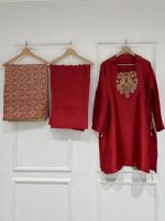 Be the first to review “SOLID RED SHEESHA SILK KURTA SHALWAR WITH BANARSI SHAWL”
