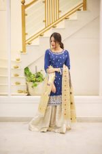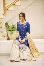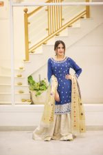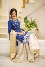 Be the first to review “SOLID ROYAL BLUE MIRROR EMBELLISHED KURTA WITH GHARARA AND DUPATTA”