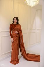 Be the first to review “Solid rust saree with velvet blouse”