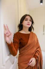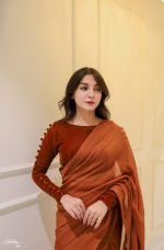 Solid rust saree with velvet blouse