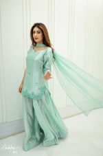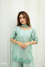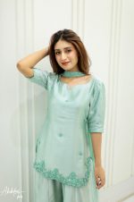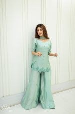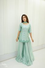 Be the first to review “SOLID SEA GREEN EMBELLISHED KURTA GHARARA WITH DUPATTA”