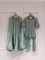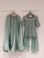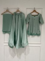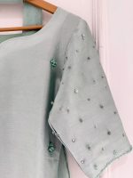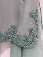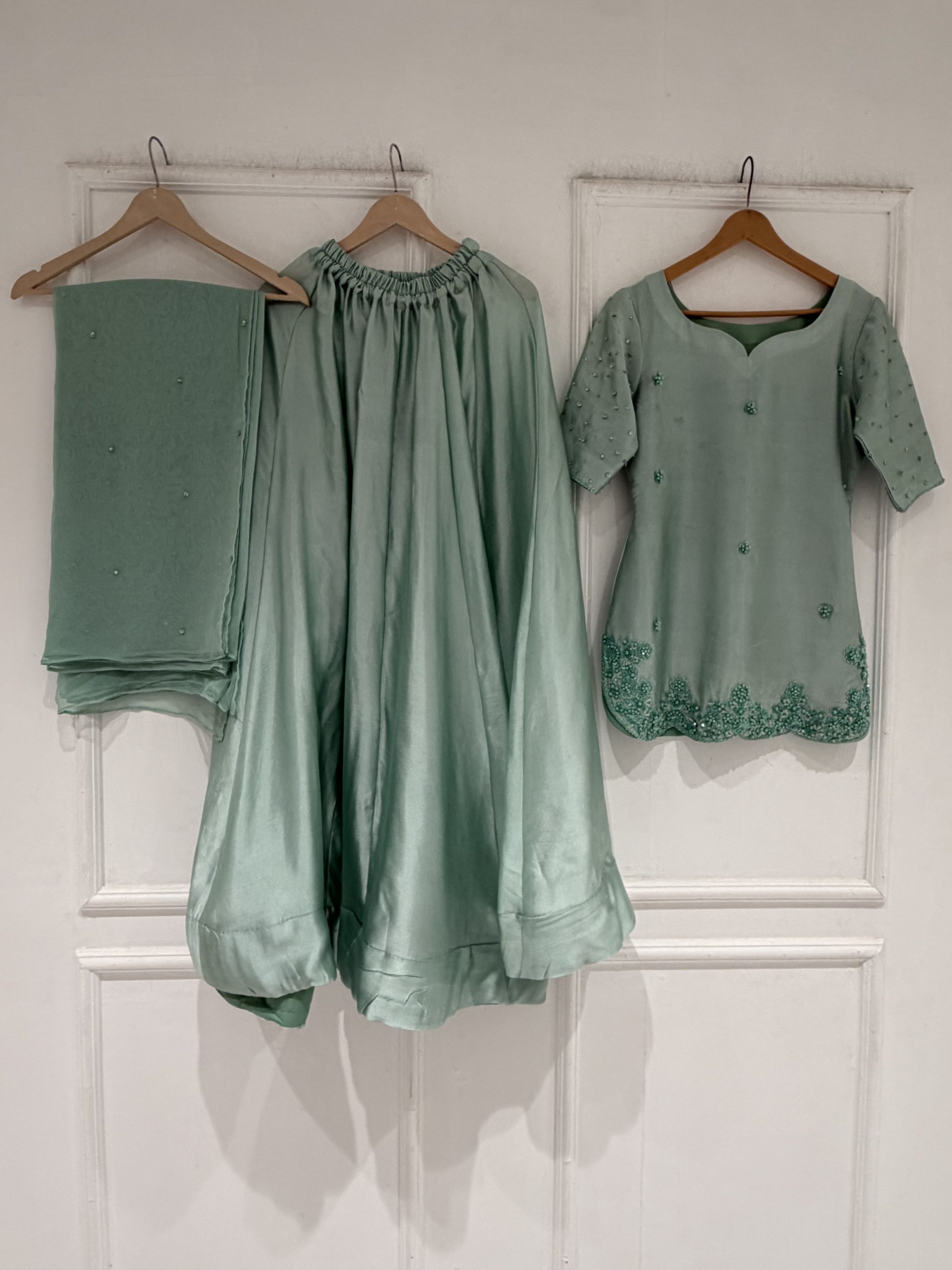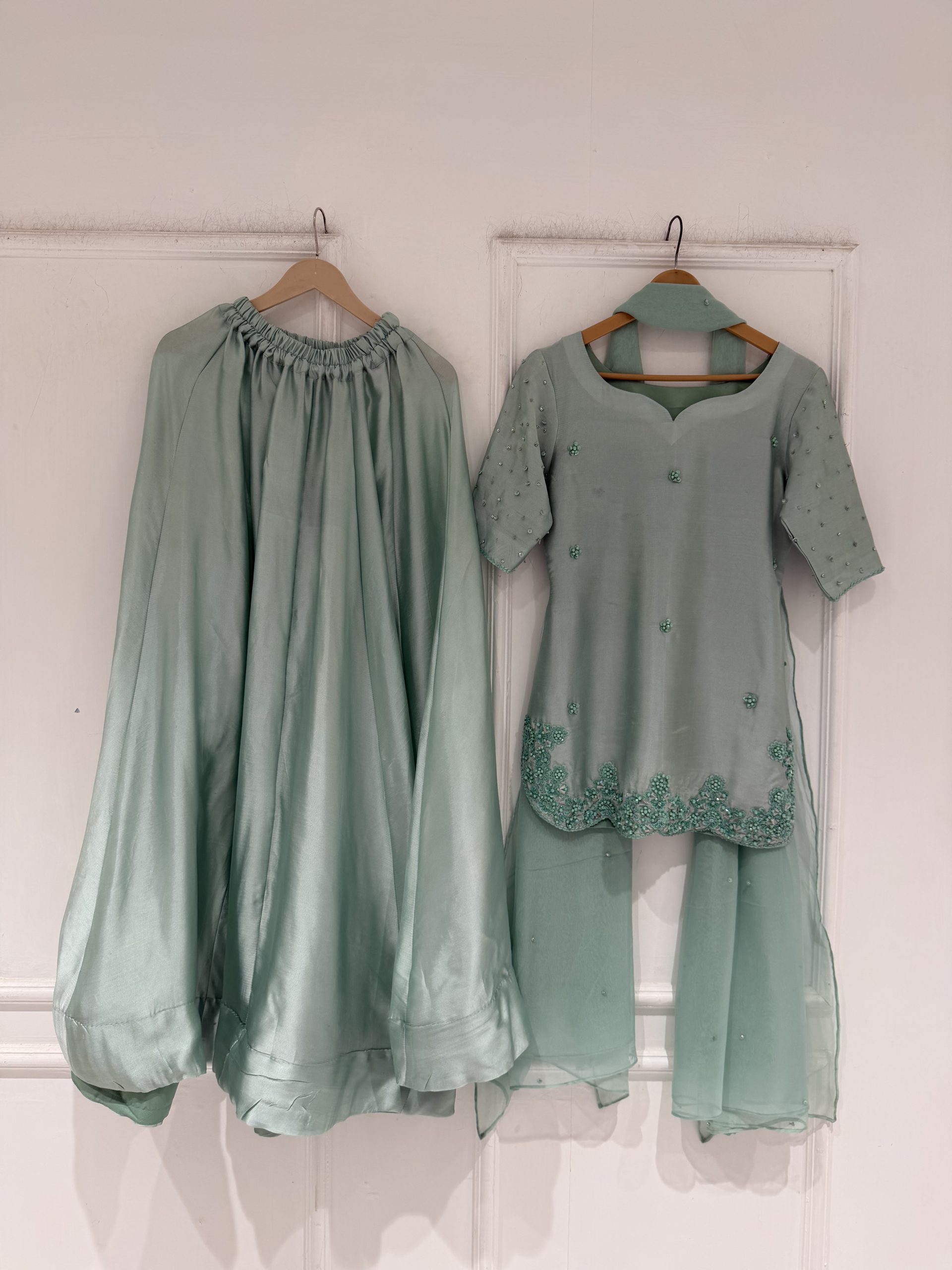 Be the first to review “SOLID SEA GREEN HAND EMBELLISHED KURTA WITH LEHENGA AND DUPATTA”