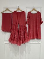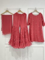 Be the first to review “SOLID SHOCKING PINK HAND EMBELLISHED KURTA WITH GHARARA AND DUPATTA”