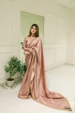 SOLID TEA PINK HAND EMBELLISHED SAREE