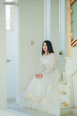 Measure under arms around the fullest part of the bust. Be sure to keep tape level across back and comfortably loose.