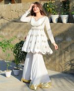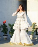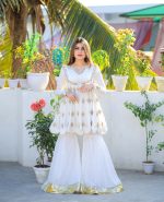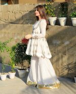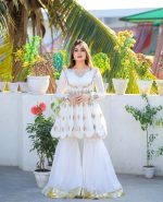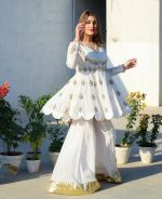 Be the first to review “SOLID WHITE EMBROIDERED PEPLUM WITH GHARARA SET”