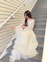 Measure under arms around the fullest part of the bust. Be sure to keep tape level across back and comfortably loose.