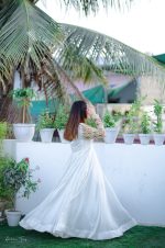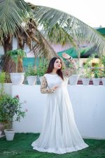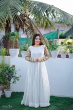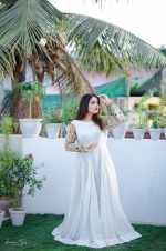 SOLID WHITE HAND EMBELLISHED LONG FLARED ANARKALI SET