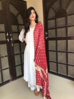 Be the first to review “SOLID WHITE KALIDAR KURTA WITH PAJAMA AND RED”
