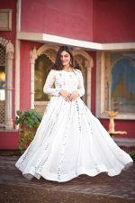 SOLID WHITE LONG FLARED MIRROR WORK ANARKALI