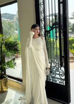 Be the first to review “SOLID WHITE SHORT SILK SAREE”