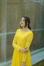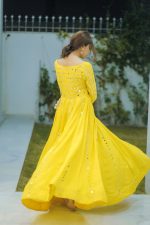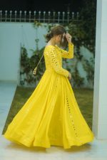 SOLID YELLOW MIRROR EMBELLISHED LONG FLARED ANARKALI SET