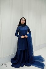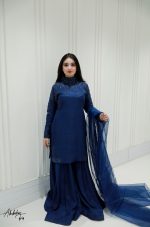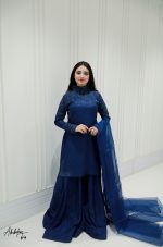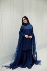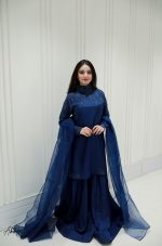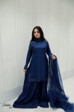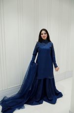 SOLID NAVY BLUE HAND EMBELLISHED KURTA SHARARA SET WITH DUPATTA Original price was: ₨50,000.00.Current price is: ₨30,000.00.