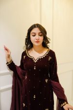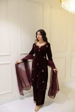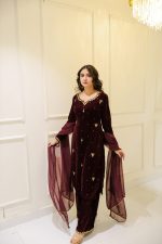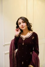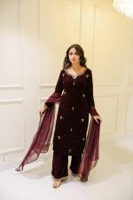 Be the first to review “SOLID PLUM VELVET HAND EMBELLISHED KURTA AND PLAZZO PANTS”