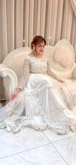 Be the first to review “WHITE EMBELLISHED MIRROR WORK ANARKALI SET”